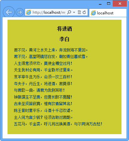 【示例1】auto有一个重要作用就是用来实现元素居中显示,下面示例演示了如何设计页面居中显示,效果如图11所示(test.html)。