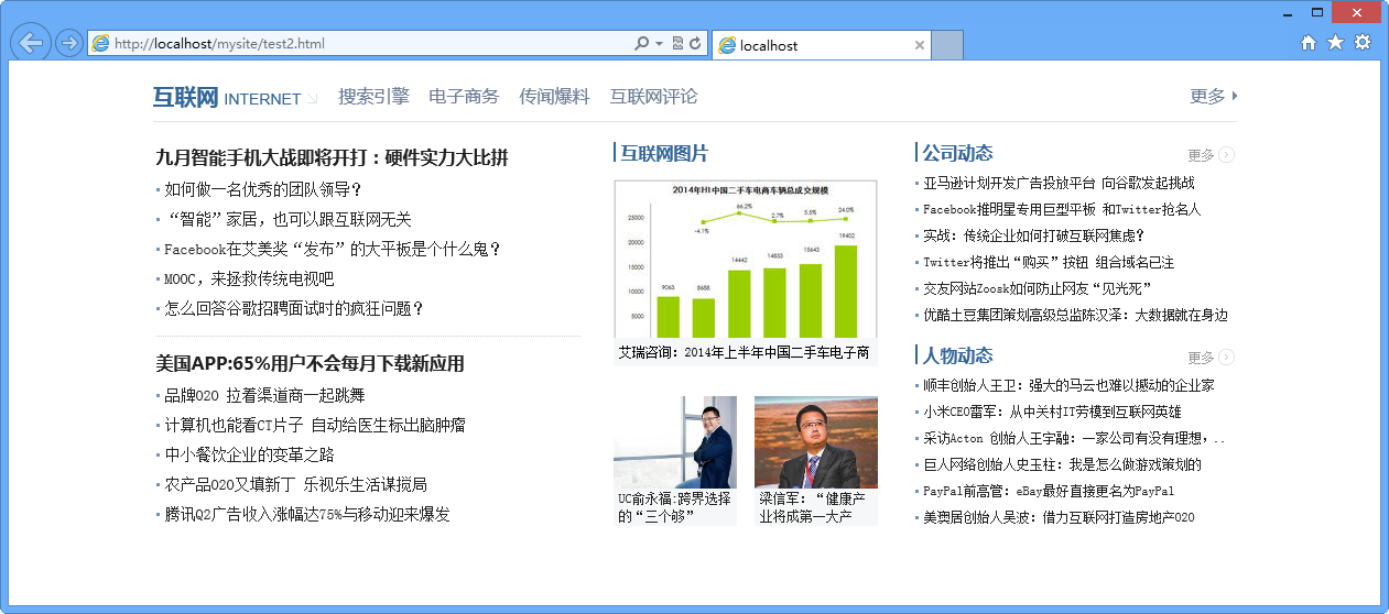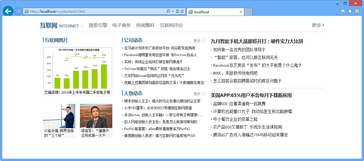 【示例3】下面示例模拟一个页面栏目,该栏目包括左右两个分栏,显示效果如图13所示(test2.html)。